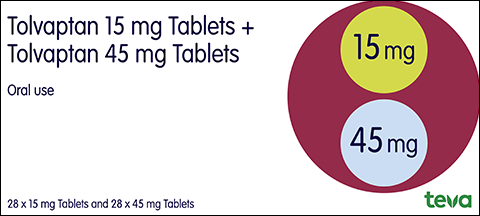 The Patient Information Leaflet for products containing Tolvaptan from Teva can be downloaded below, along with other information such as Frequently Asked Questions where applicable. To contact Teva's Medical Information Service email: medinfo@tevauk.com or telephone: 0207 540 7117.
